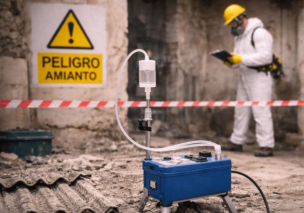 En trabajos de retirada o mantenimiento, la medición ambiental de fibras de amianto es necesaria para certificar que no existe riesgo tras la intervención.